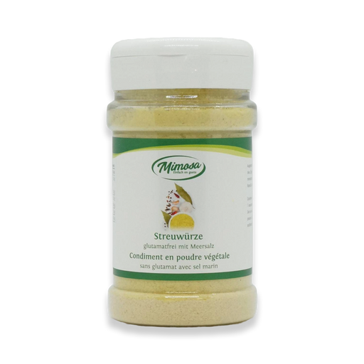Fein abgestimmte Streuwürze zum Nachwürzen und Abschmecken. Eignet sich für Salate, Gemüse und Saucen.