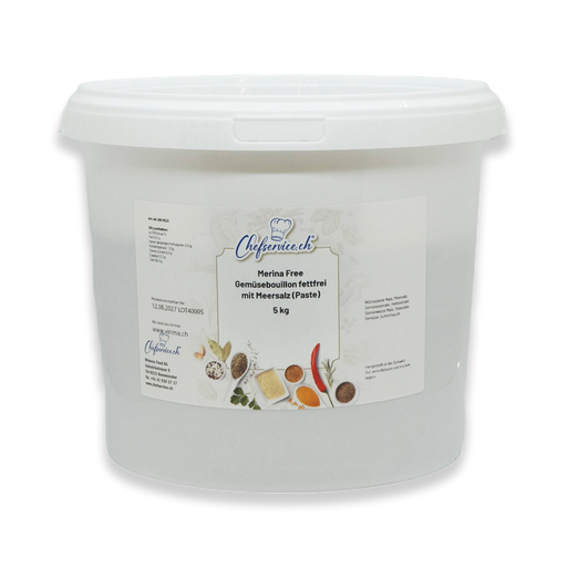 Vollständige Details anzeigenMerina Free Gemüsebouillon fettfrei mit Meersalz (Paste) 5 kg